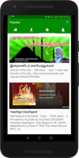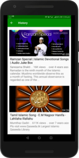 - Your viewed videos are instantly available in history. You may re-watch the best Islamic Tamil Songs (தமிழ் இஸ்லாமிய பாடல்கள்), again and again by visiting your history in the app