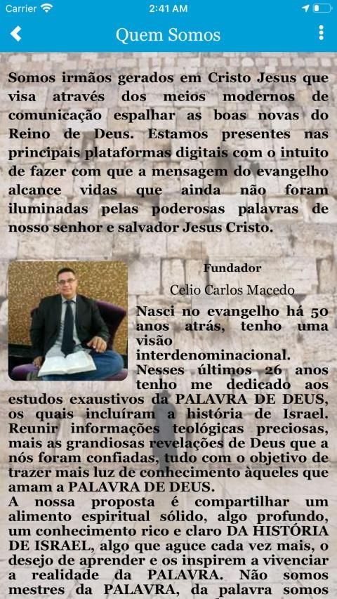 Somos irmãos gerados em Cristo Jesus que visa através dos meios modernos de comunicação espalhar as boas novas do Reino de Deus. Estamos presentes nas principais plataformas digitais com o intuito de fazer com que a mensagem do evangelho alcance vidas que ainda não foram iluminadas pelas poderosas palavras de nosso senhor e salvador Jesus Cristo.
