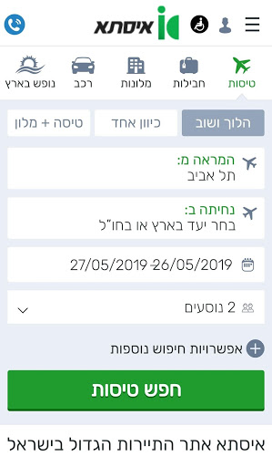 The company is engaged in the leisure and recreation industry. Being a member of some of the world's leading tourism organizations, enables "Issta Lines" to provide its clients with a wide range of services including, international flights, hotels, tours, domestic flights to Eilat and inbound travel, car rental and cruises.