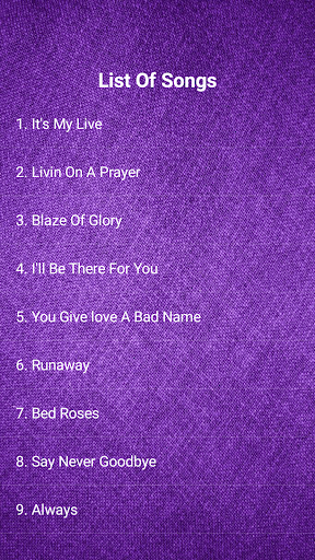 In this application, you could listening Bon Jovi Best Collections & Lyrics.