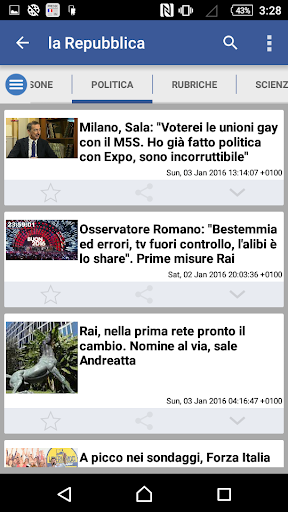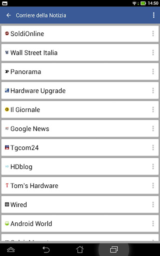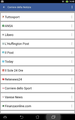 la Repubblica, Corriere della Sera, Il Fatto Quotidiano, Tiscali, La Gazzetta dello Sport, La Stampa, Cielo, Leggo, Il Messaggero, Il Resto del Carlino, Fanpage, Tuttosport, ANSA, Libero, L'Huffington Post, Il Post, oggi , Il Sole 24 Ore, Retenews24, Corriere dello Sport, Varese News, Finanzaonline.com, QuiFinanza, SoldiOnline, Wall Street Italia, Panorama, Hardware Upgrade, Il Giornale, Google News, Tgcom24, HDblog, Tom Hardware, Wired, Android Mondiale, Calciomercato, Affaritaliani, Il Mattino, Il Gazzettino, Rai News, Hardware Upgrade, ilsussidiario, AGI, Il Secolo XIX, Gazzetta del Sud, La Sicilia, Avvenire.it, Internazionale, Blog di Beppe Grillo, Blitz Quotidiano, UrbanPost, Funweek, Vanity Fiera, Gossip News, Giornale di Sicilia