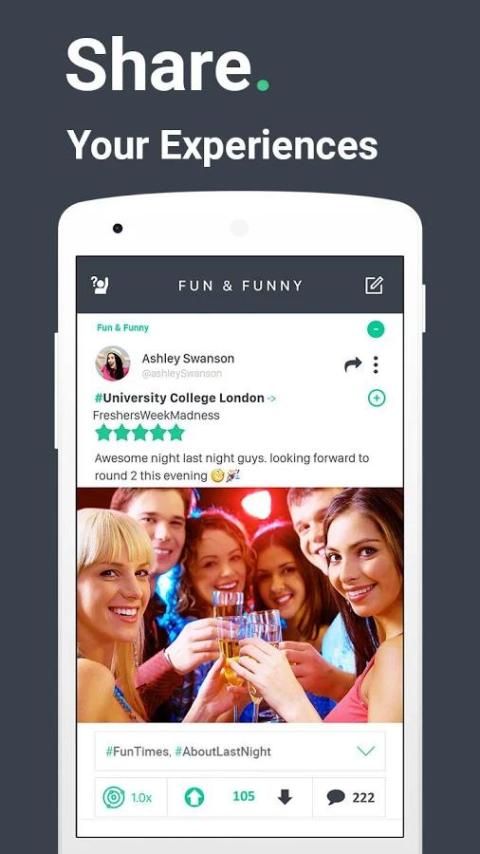 • Share interesting posts and stories with hashtags, photos, videos, memes and gifs