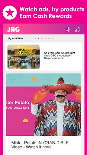 In my 2weeks of using this app, i always feel excited every time i open my account because i always waiting for new event,activities and ads especially when they are giving higher points . . As of now i already processed my first gcash cash out😀 i hope there are more ads and hoping for higher points, thank you jag!!!!!