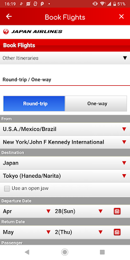 Book Flights You can make reservations for international flight . My Trips You can check your flight details. Flight Info You can search for flight status by flight number or route.