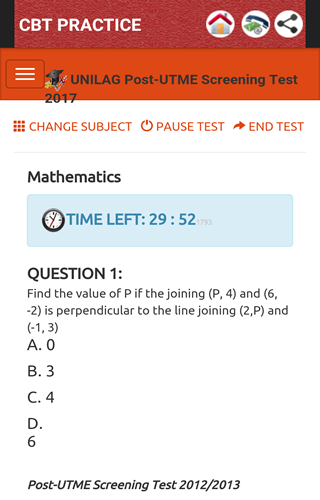 2. Questions picked randomly from a pool of over 60,000 UTME Screening questions from over 50 Nigeria Universities, Polytechnics and Colleges of Education.