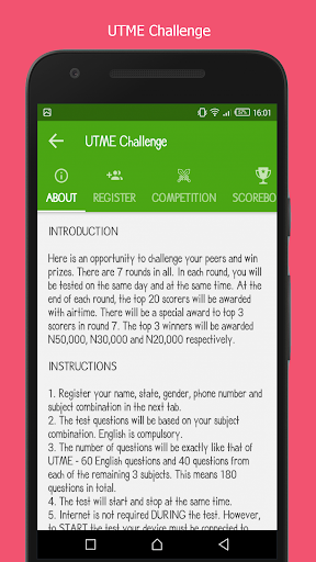 The JAMB UTME CBT App for Nigerian Scholars is a Computer Based Testing (CBT) and learning application that enables students sitting for their JAMB Unified Tertiary Matriculation Examination (UTME) practice authentic JAMB past questions and ensure they are ready for their JAMB exam. It works offline and there is no need of downloading any other content after installing the app.