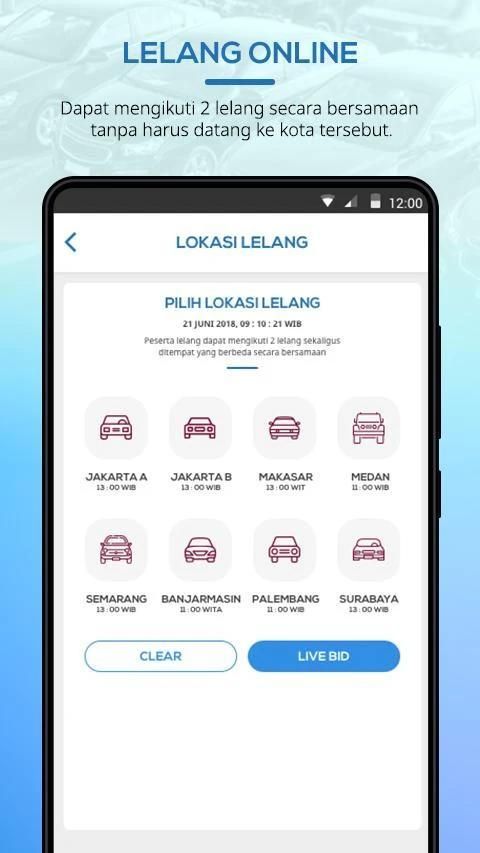 Through this application, auction participants get the convenience of joining 2 auctions simultaneously at different auction locations / cities.