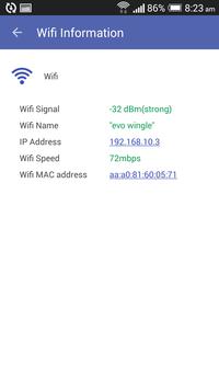 When it comes to network, this application also gives you an insight into Wifi and sim related information such as Wifi name, wifi speed and also the IP address. In addition, it also give you information about Network type, Operator ID, and Service Mode etc.