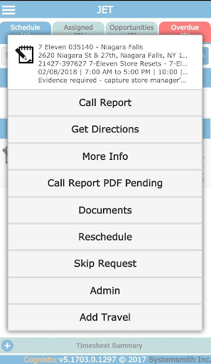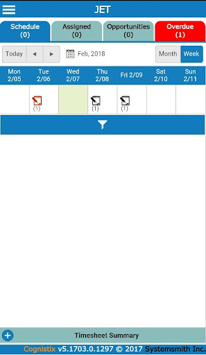 JET Mobile allows direct access to all your call report needs optimized for your phone. JET Mobile will also work on a tablet. The app makes it possible to complete call reports and travel records while at the work site. Your schedule is available to you at any time in both a Week and Month view format. You can easily schedule visits. Simply use the Start and Stop buttons to enter your call report date and time data.