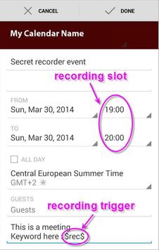 - spy recorder :remotely from the agenda (just create an event with special keyword)