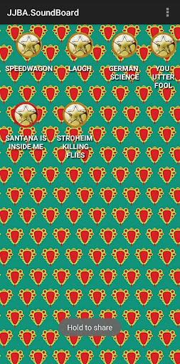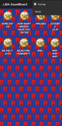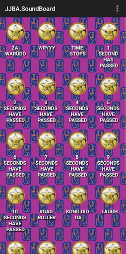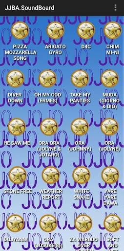 App, that includes more than 200 different sounds and phrases from the great and famous anime JoJo Bizarre Adventure(Japanese:ジョジョの奇妙な冒険). Enjoy playing with the sounds!
