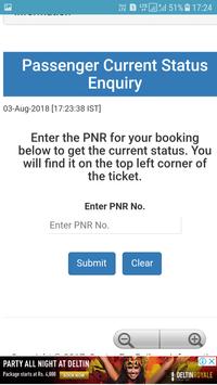 We provide following function in our app; 1.Live Train Status-Information about current position and delay. 2-Train Between Station. 3-Seat AvailaBility 4-PNR EnQuiry 5-Train Schedule 6-Fare EnQuiry Please download our app.and RATE IT.