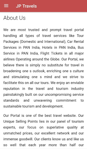 We are most trusted and prompt travel application handling all types of travel services like Tour Packages (Domestic and International), Car Rental Services in PAN India, Hotels in PAN India, Bus Service in PAN India, Flight Tickets in all major airlines Operating around the Globe. Our Application, we believe there is simply no substitute for travel in broadening one's outlook, enriching one 's culture and stimulating one's mind and we strive to facilitate this on all our tours. We enjoy an enviable reputation in the travel and tourism industry painstakingly built on our uncompromising service standards and unwavering commitment to sustainable tourism and development.