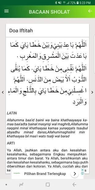 Fitur Bacaan Sholat disertai dasar dalilnya