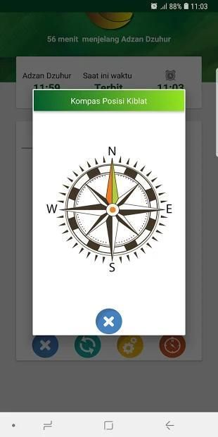 Aplikasi ini juga di lengkapi dengan penunjuk arah kiblat dan mampu menunjukkan arah kiblat dengan cukup akurat saat dilakukan pengetesan dengan Samsung Galaxy.
