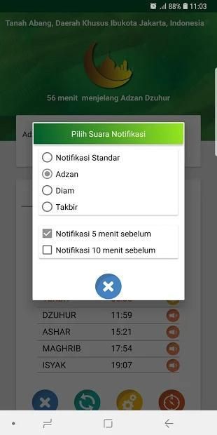 Notifikasi 5 menit dan 10 Menit sebelum sholat