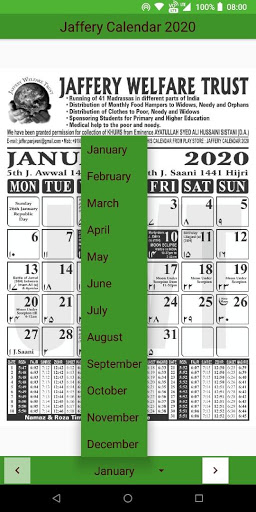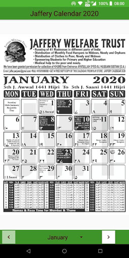 Jaffery Calendar 2020 Android app contains a soft copy of the Jaffery Calendar 2020.