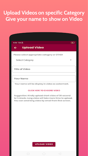 - Upload Video by any User with his/her name on the video