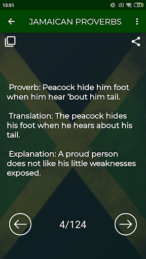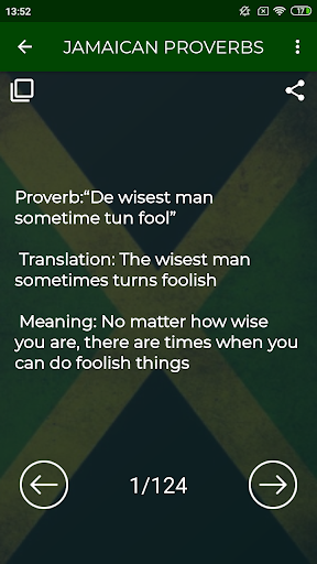 By downloading this APP, you can find out the vast collection of Jamaican Wisdom in its original language, translation, and meaning of such sayings in English.