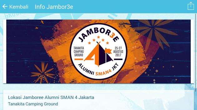 This Mobile Apps is designed to help National Senior High School 4 Jakarta Alumni promoting the Jamboree Event which will take place on 25th to 27th of August 2017.