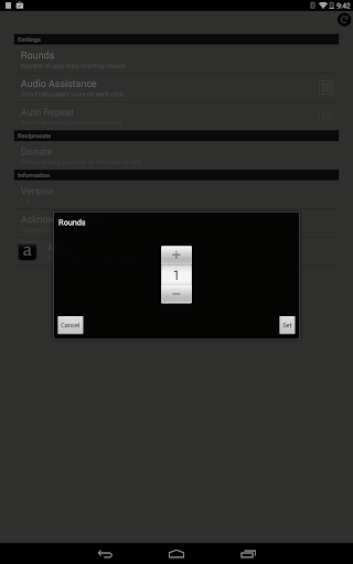Also, Srila Prabhupada's voice assistance and its background score creates an environment of companionship/group (removing silence & loneliness - especially for beginners with busy lifestyle surrounded with some kind of activity and sound around always)