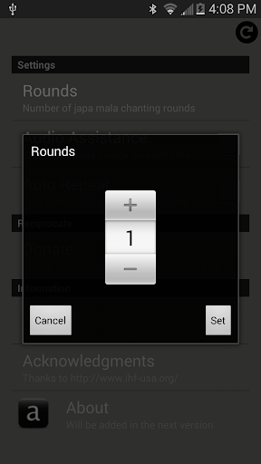 1. Customize the button: You can choose between the mala image button and Sri Krishna's legs image button. Check the app's settings to choose the button.