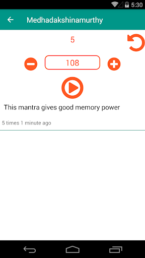 Japam will take your input of a mantram and repeats it specified number of times so that you can recite in sync which will give you more concentration as well as exact count of your japam.