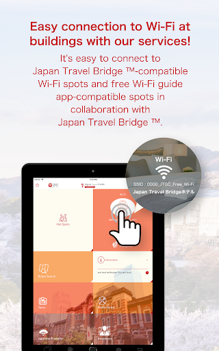 It's easy to connect to Japan Travel Bridge ™-compatible Wi-Fi spots and free Wi-Fi guide app-compatible spots in collaboration with Japan Travel Bridge ™. (We're currently expanding the number of compatible facilities.)