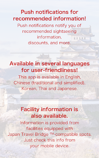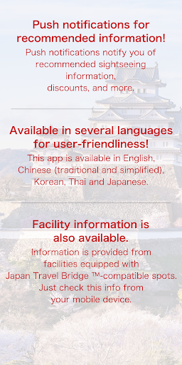 Information is provided from facilities equipped with Japan Travel Bridge ™-compatible spots. Just check this info from your mobile device.