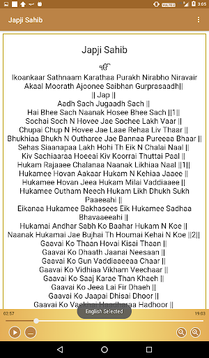 Japji Sahib consists of 38 hymns and a final Salok. Japji Sahib is a prayer in Sikh religion and it is done at the time of morning. By Japji Sahib app users can read & listen Japji Sahib path.