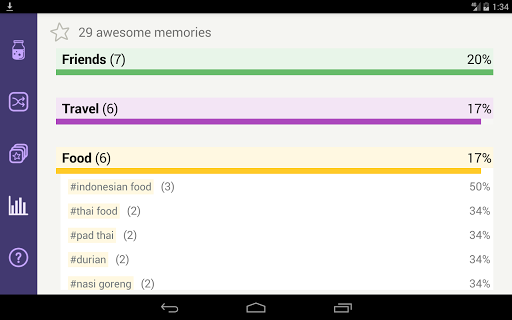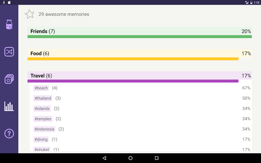 • check the stats to know which categories contain your most awesome memories. Know yourself better!