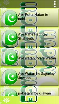 This app is specially design for independence day & Defence day of Pakistan for online celebration. This app has very easy interface and best and hit songs of the year e.g Yaaro mera Yaar na Raha Sad, Ab To Hai Aazad Yeh Dunia.