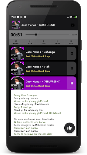 Jass Manak Songs Application is specially created for Punjabi music fans and comes with lyrics in each song