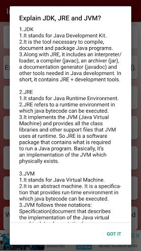 with programs this app also contains interview questions which may ask in interview. By using this app you can easily understand java and prepare for interview.