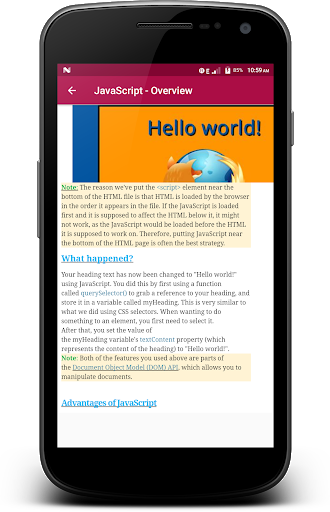 ❰❰ This App has been prepared for JavaScript beginners to help them understand the basic functionality of JavaScript to build dynamic web pages and web applications.❱❱