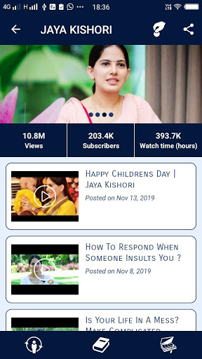 New Tab arise, SATSANG KI BAAT. This tab viewed some video listing of Jayakishori Ji of satsang ki baat.