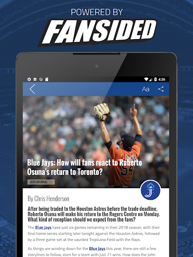 Control how you view Blue Jays content by setting up alerts and sorting through categories, while intuitive menus make it easy to toggle between feeds from Jays Journal and throughout FanSided for the freshest news.