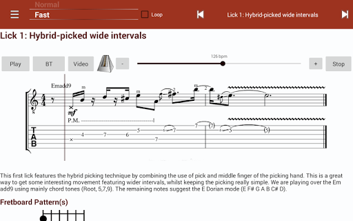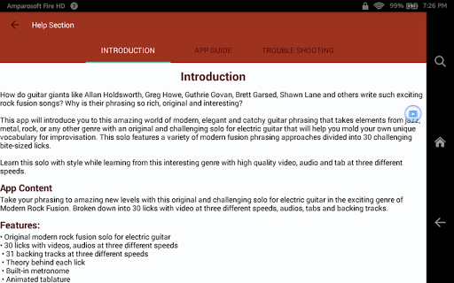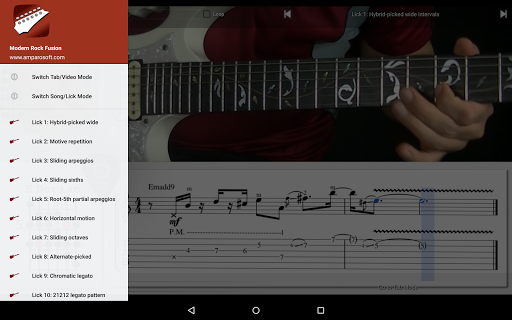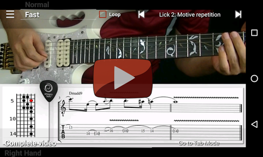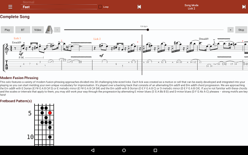 This app will introduce you to this amazing world of modern, elegant and catchy guitar phrasing that takes elements from jazz, metal, rock, or any other genre with an original and challenging solo for electric guitar that will help you mold your own unique vocabulary for improvisation. This guitar solo features a variety of modern fusion phrasing approaches divided into 30 challenging bite-sized licks, which facilitate the learning process.