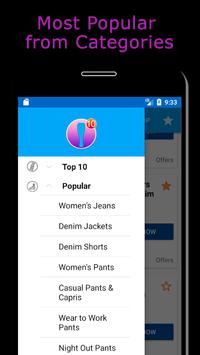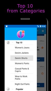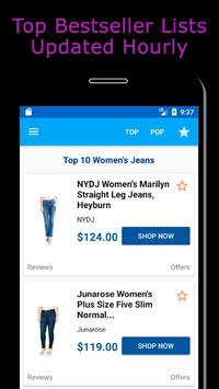 Simply pick a category like denim shorts, casual pants or fashion jeans, and our app will provide a list of the top 10 best sellers and 100 most popular jeans or capris in that category. You can also look for denim clothing including from popular brands like NYDJ or Karen Kane. Every hour the list will update to show you the most current bestsellers, so you never miss out on a hot, new trend and risk falling into FOMO.