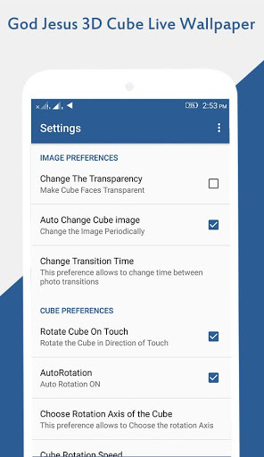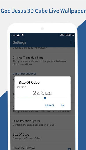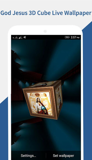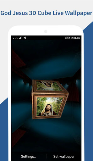 Jesus 3D Cube Live Wallpaper features a rotating 3D photo cube showing pictures from selected image.