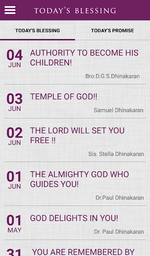 It also gives a quick access to the rich collection of songs, videos, messages of the Dhinakarans, latest updates on events and much more...