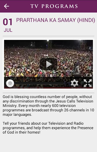 Praise the lord, Jesus Call app provides me all the facilities easily that I get all the information from this app so thank you all the members of Jesus Calls Ministry, May God bless you.....