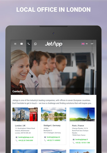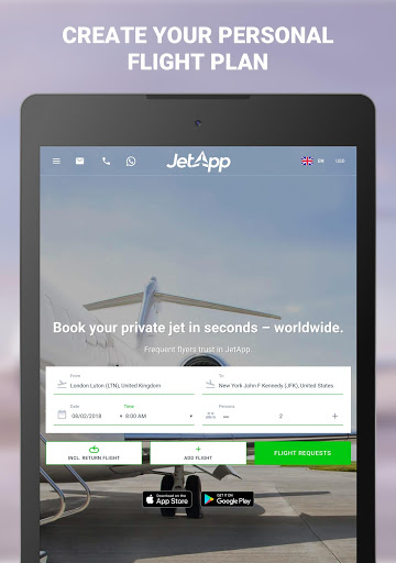 JetApp’s key features are its 100 percent flexibility, complete professionalism in every detail and it is always just a swipe away on your mobile device. We are looking forward to receiving your flight inquiry!