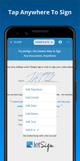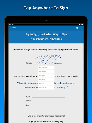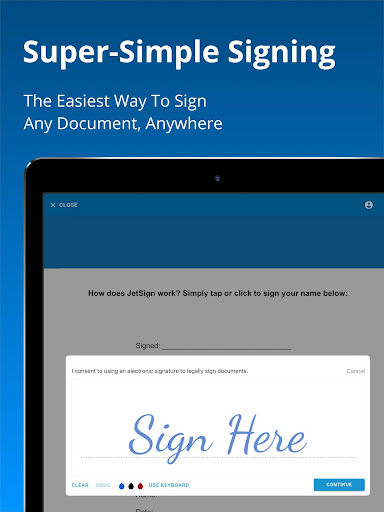 Say goodbye to printing, scanning, and complex e-signature tools! JetSign lets you sign any document in seconds including:
