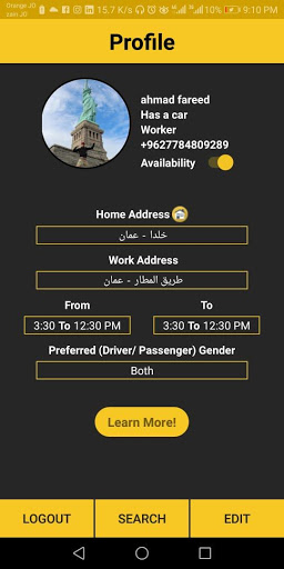 He found neighbors in the same area with cars that leave their houses at the same time. He took their number through the application, and they began to share the costs of gasoline and the car and saved themselves transportation costs. If there were no people with cars around him, Hussam would find results of other people with no cars that have the same appointment, and they can gather to share a taxi and split the cost.