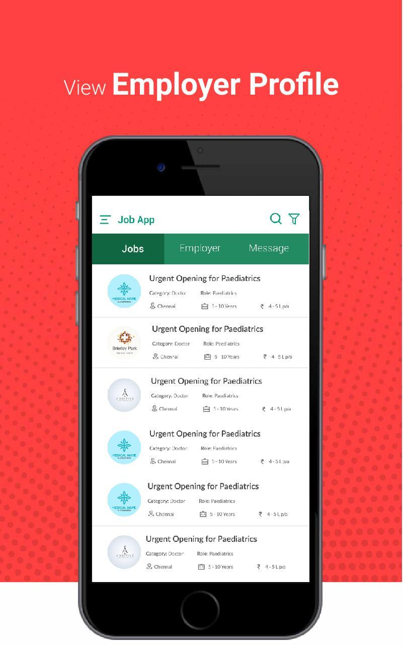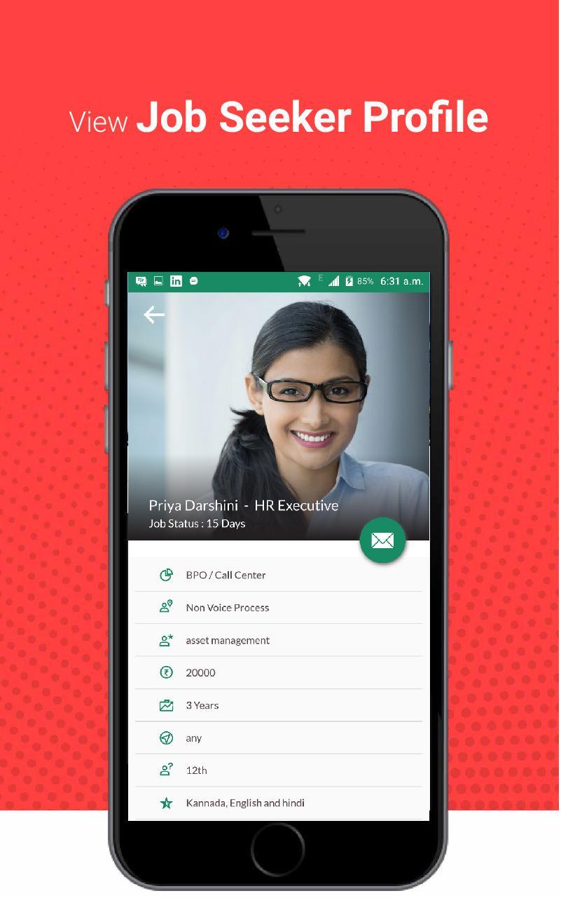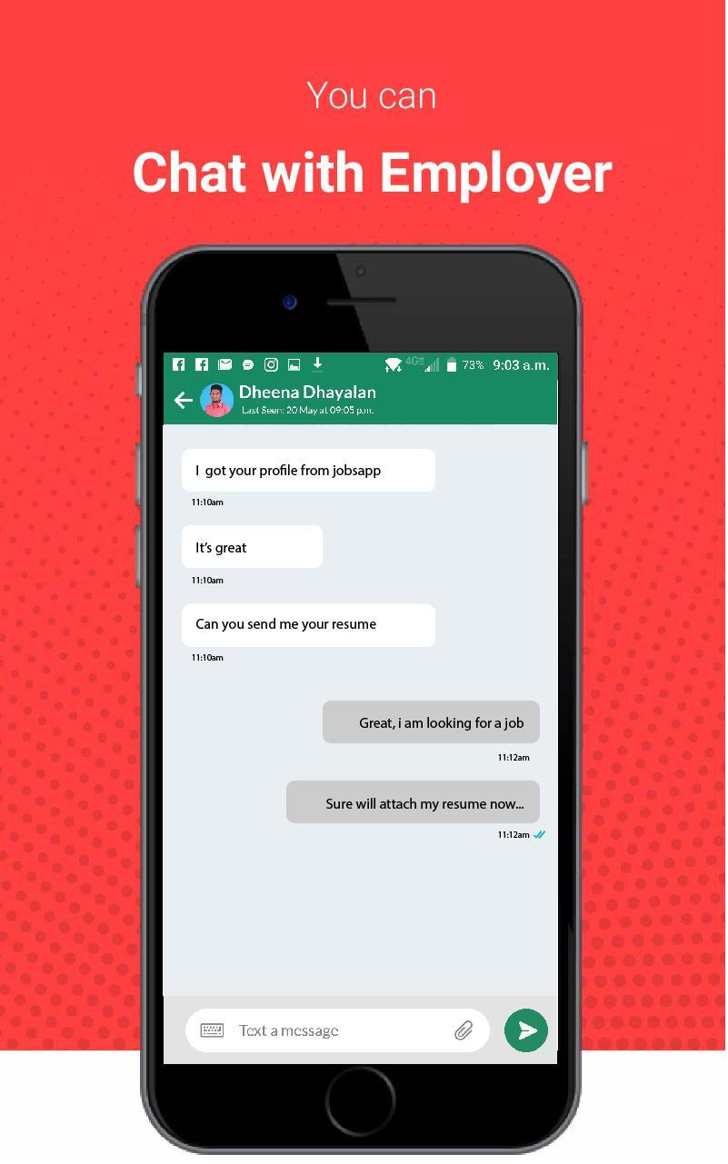 This is the first job search App in India Were Job seekers and Employers can Chat, sends image and Documents.