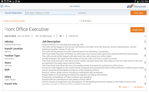 - Easily share jobs with friends through email, Facebook and LinkedIn