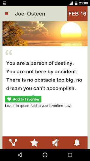 Joel Osteen Daily brings the wisdom of Joel to you in a form of Mobile App, wake up every day, with Joel Osteen's Motivational Wisdom, starting today.