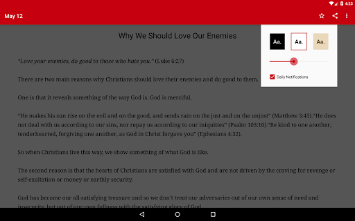 * Turn on daily reminders to read (for devices running Android 3.1 and above)