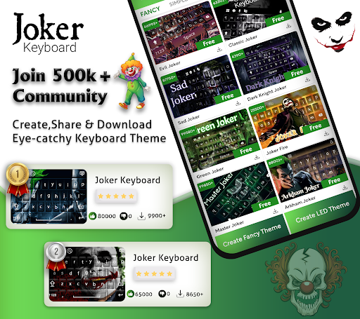 - online and Offline Colorful Joker Keyboard Themes for free keyboard for android.